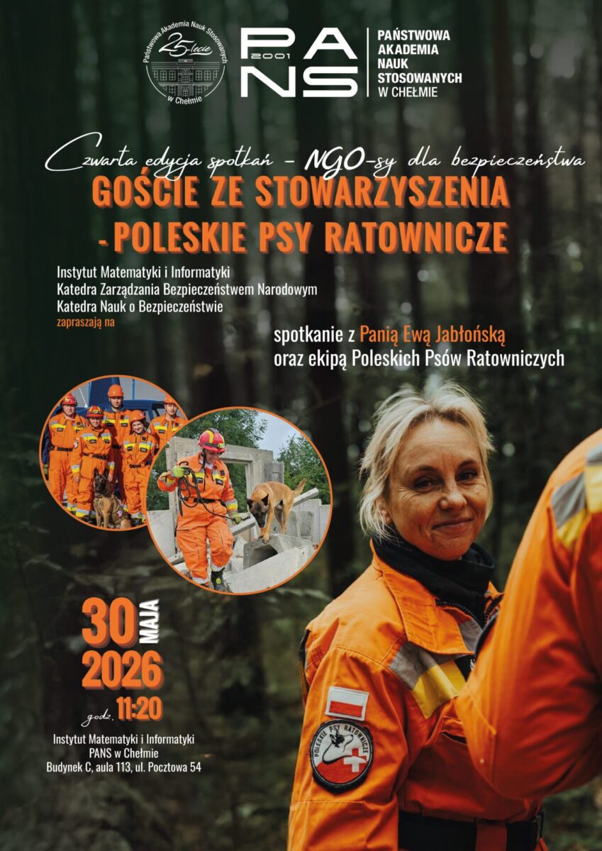 Zapraszamy na czwartą edycję spotkań z cyklu „NGO-sy dla bezpieczeństwa” organizowaną przez Katedrę Zarządzania Bezpieczeństwem Narodowym i Katedrę Nauk o Bezpieczeństwie PANS w Chełmie.