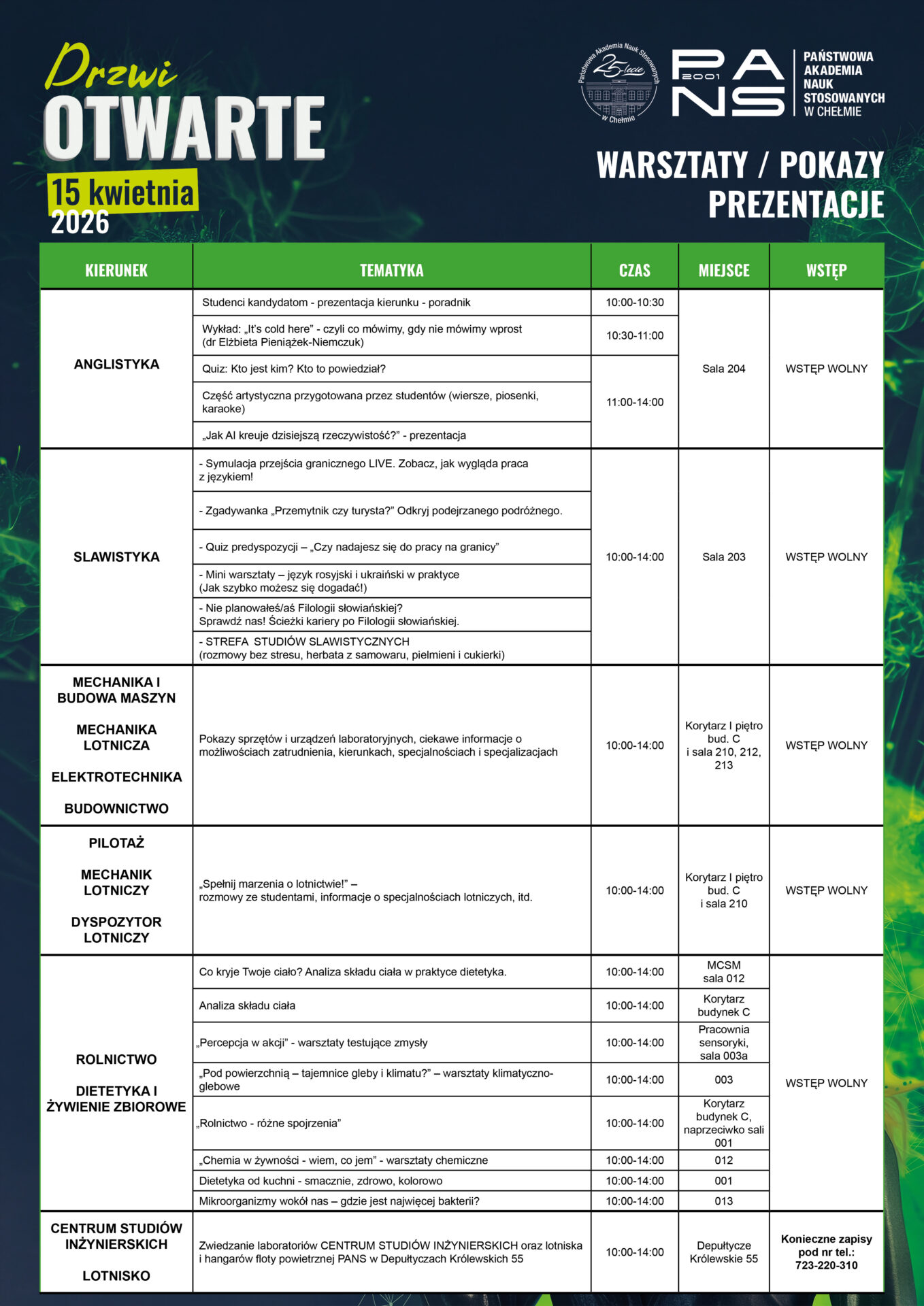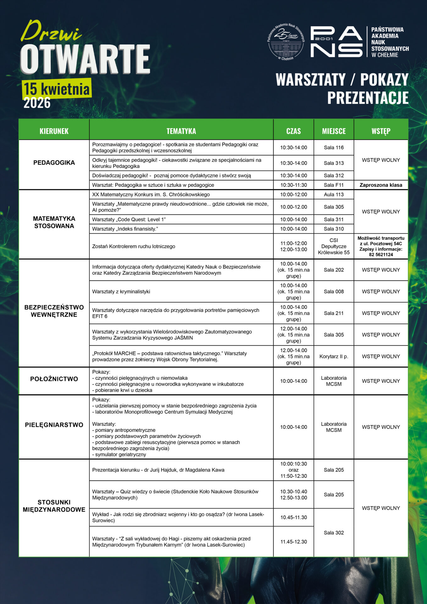 - inspirujące wykłady, warsztaty i pokazy – 37 specjalności na kierunkach studiów PANS w Chełmie