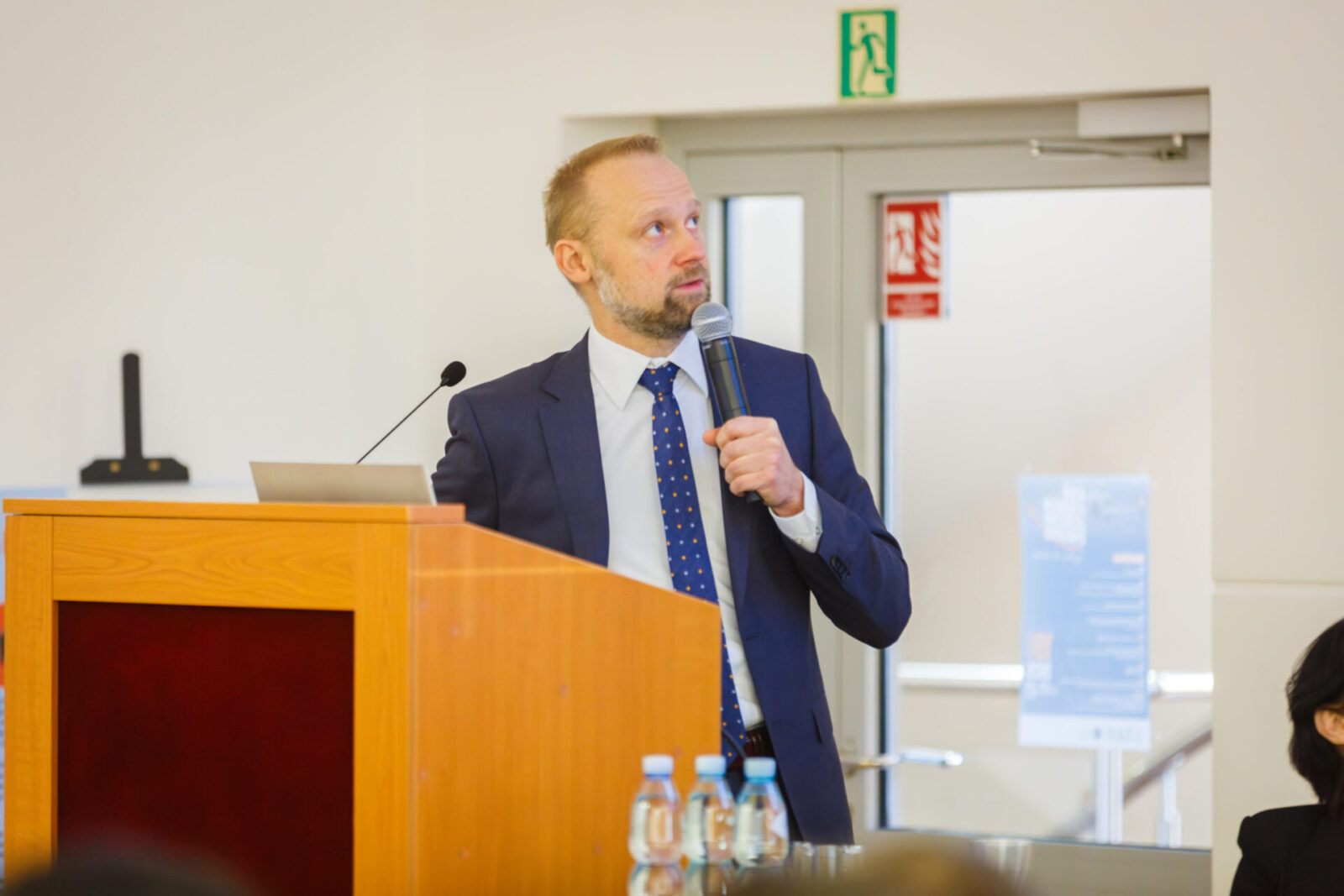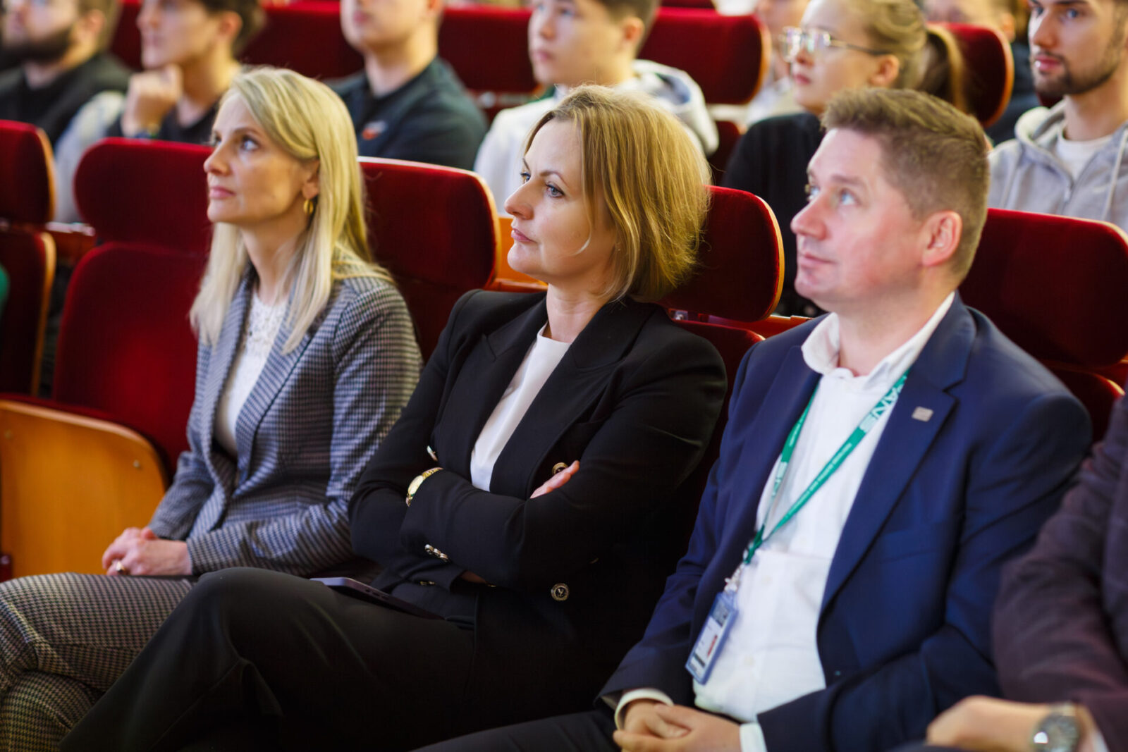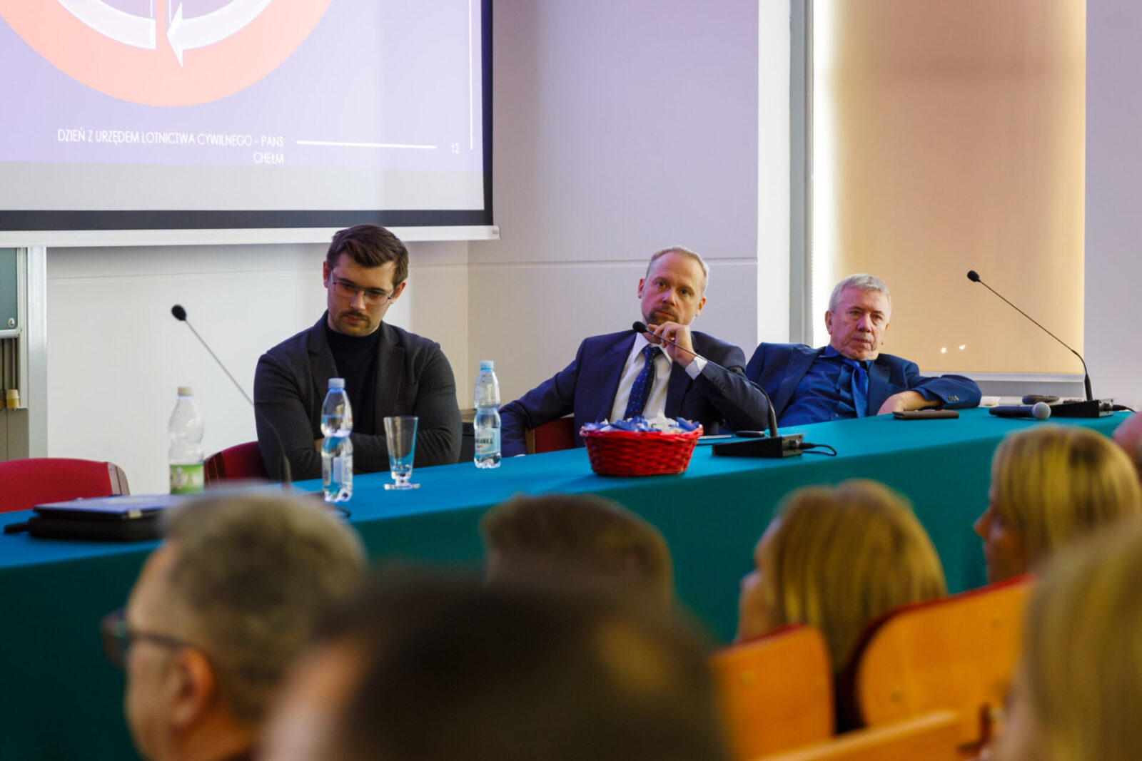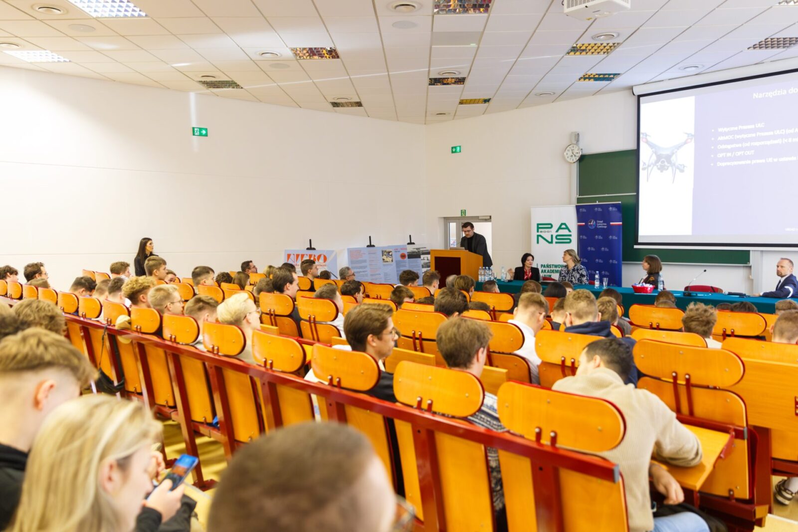 Pani Anna Jankowska przybliżyła zagadnienia związane z ochroną lotnictwa cywilnego, a Pan Karol Kądziela mówił o rosnącym znaczeniu dronów i wyzwaniach wynikających z rozwoju technologii bezzałogowych statków powietrznych.