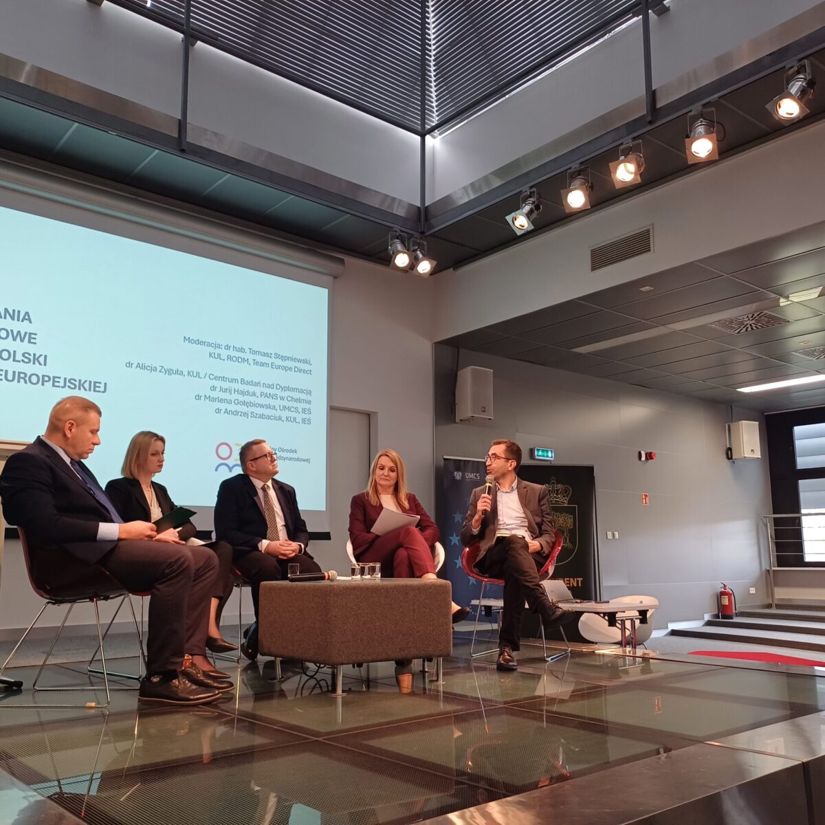 Następnie dr Maria Mazur (WSPA) poprowadziła panel dyskusyjny pt. “Priorytety drugiej prezydencji Polski w Radzie Unii Europejskiej. Próba bilansu”. Do dyskusji zaproszono: dr hab. Beatę Piskorską, prof. KUL i Prorektor KUL, dr hab. Annę Moraczewską (UMCS), dra Andrzeja Dumałę (UMCS) oraz dra Jakuba Olchowskiego – dyrektora Centrum Kompetencji Europejskich UMCS.