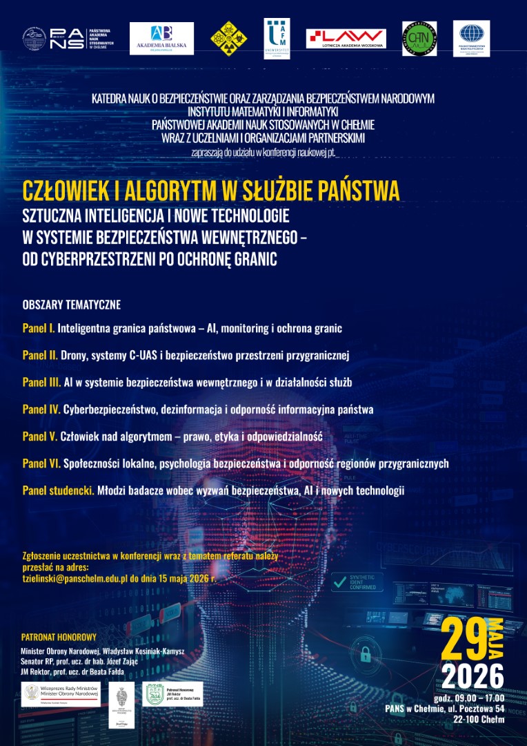 „Człowiek i algorytm w służbie państwa: sztuczna inteligencja i nowe technologie w systemie bezpieczeństwa wewnętrznego – od cyberprzestrzeni po ochronę granic”.