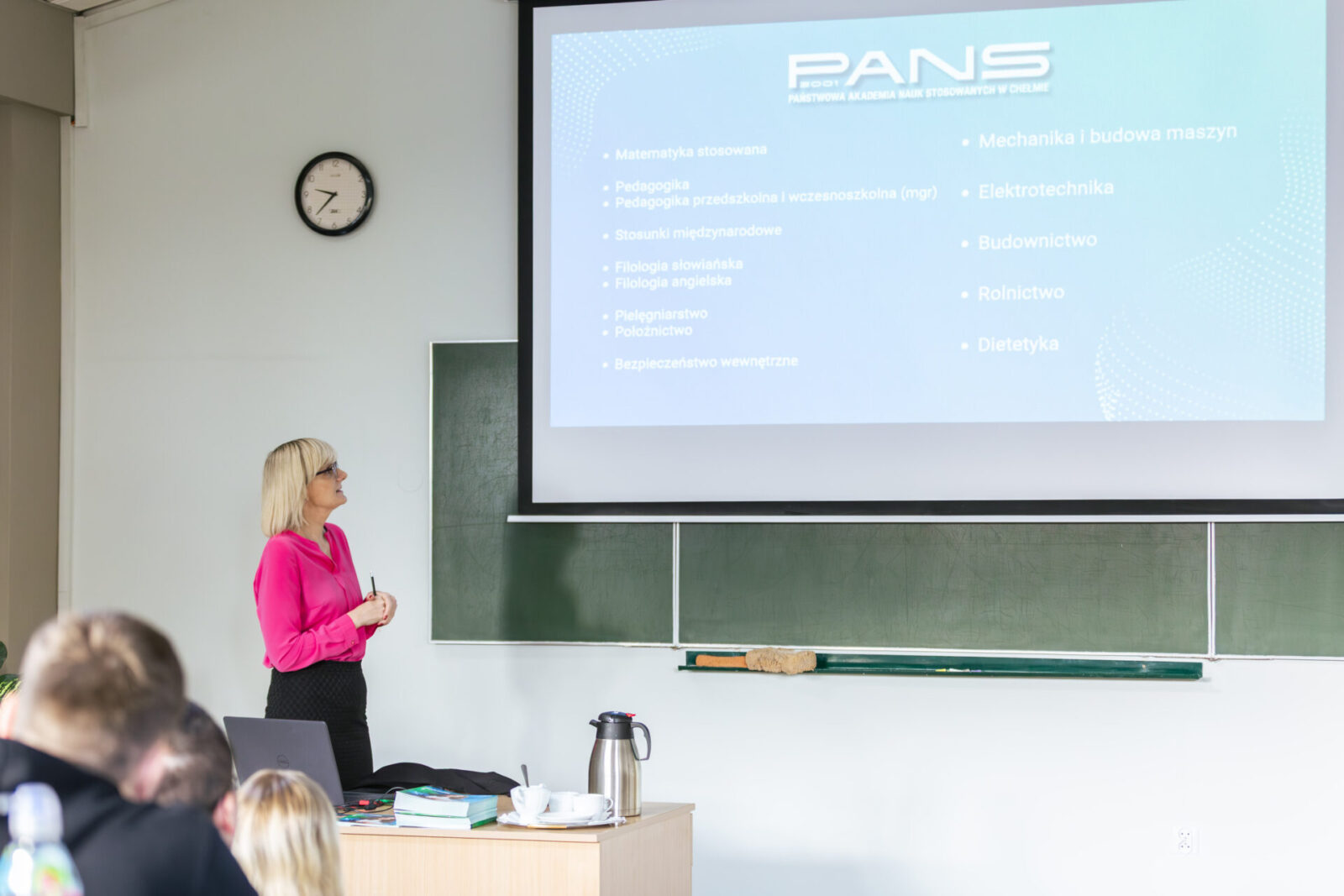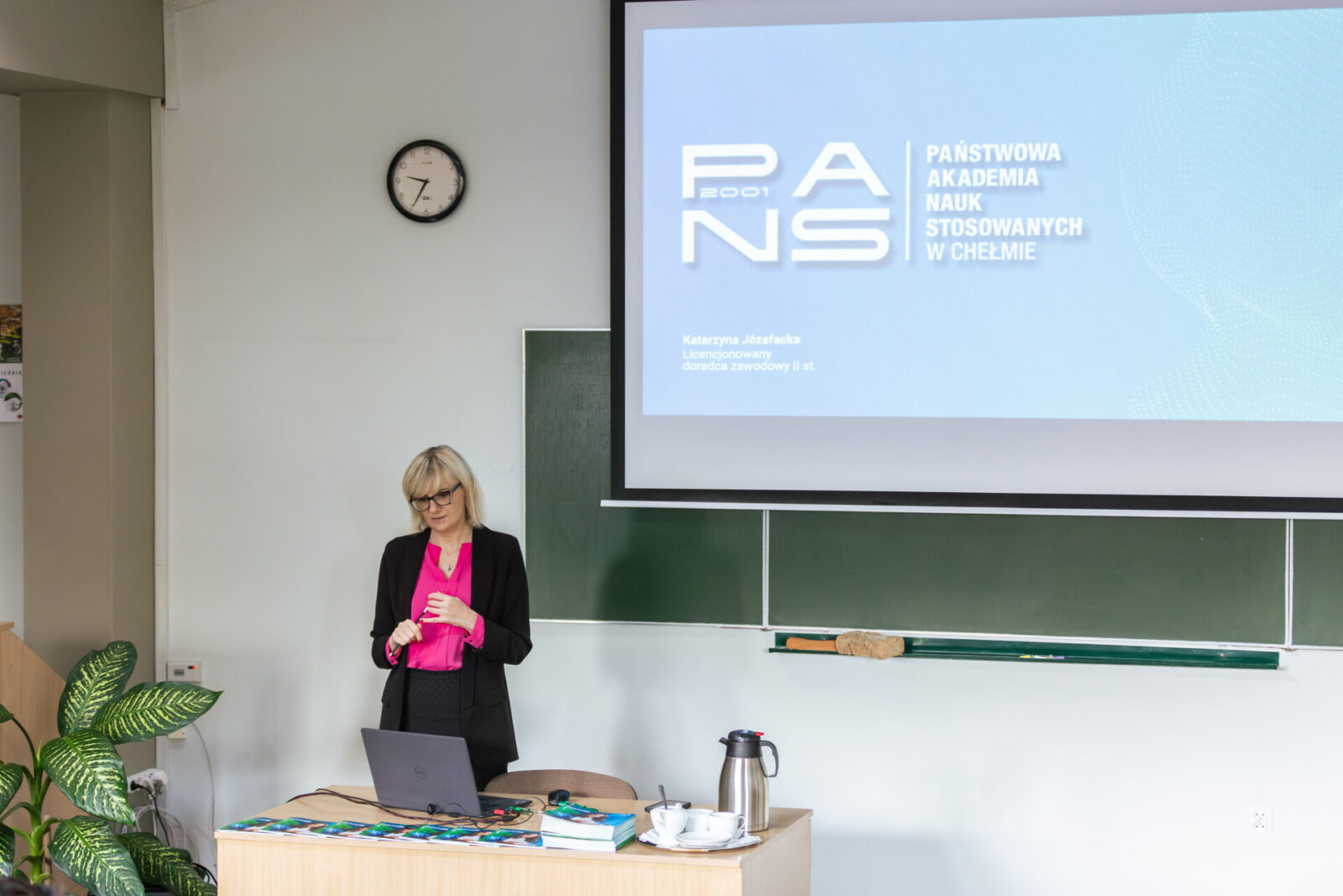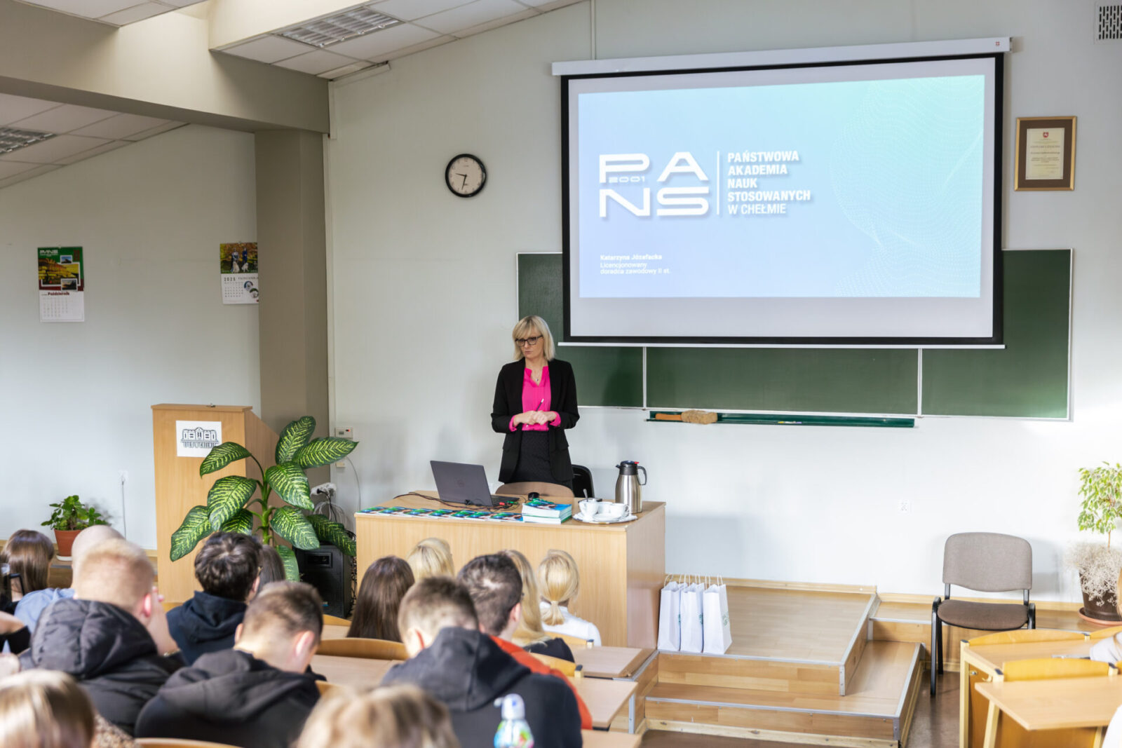 W wykładzie pt.„Drogowskazy maturzysty” przedstawicielka PANS w Chełmie, doradca zawodowy Katarzyna Józefacka, omawiała wybór studiów i zawodu w kontekście dynamicznych zmian na rynku pracy. W szczególny sposób podkreślała wpływ rozwoju sztucznej inteligencji na powstawanie nowych zawodów, zmianę oczekiwań pracodawców oraz konieczność nabywania kompetencji, które będą w najbliższych latach cenione będą najbardziej. Poruszała także praktyczne wskazówki dotyczące tego, jakie kierunki studiów i umiejętności najlepiej przygotują uczniów do pracy w dynamicznie zmieniającym się świecie technologii i AI.