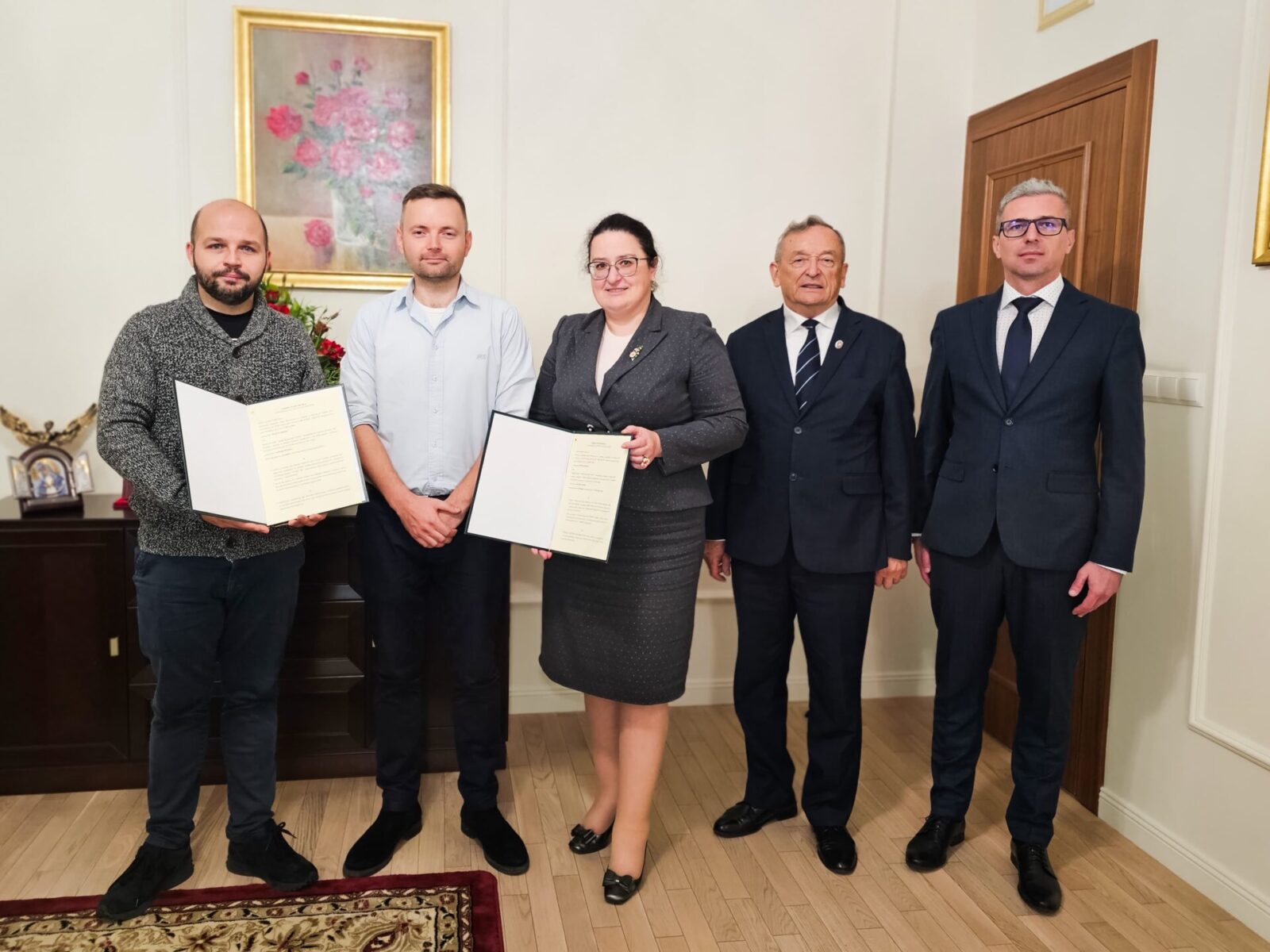 JM Rektor Państwowej Akademii Nauk Stosowanych w Chełmie, prof. ucz. dr Beata Fałda, podpisała umowę warunkową o współpracy naukowo-technicznej z twórcami innowacyjnego projektu „Puchacz 360” – Michałem Kowalskim i Kamilem Brzozowskim.