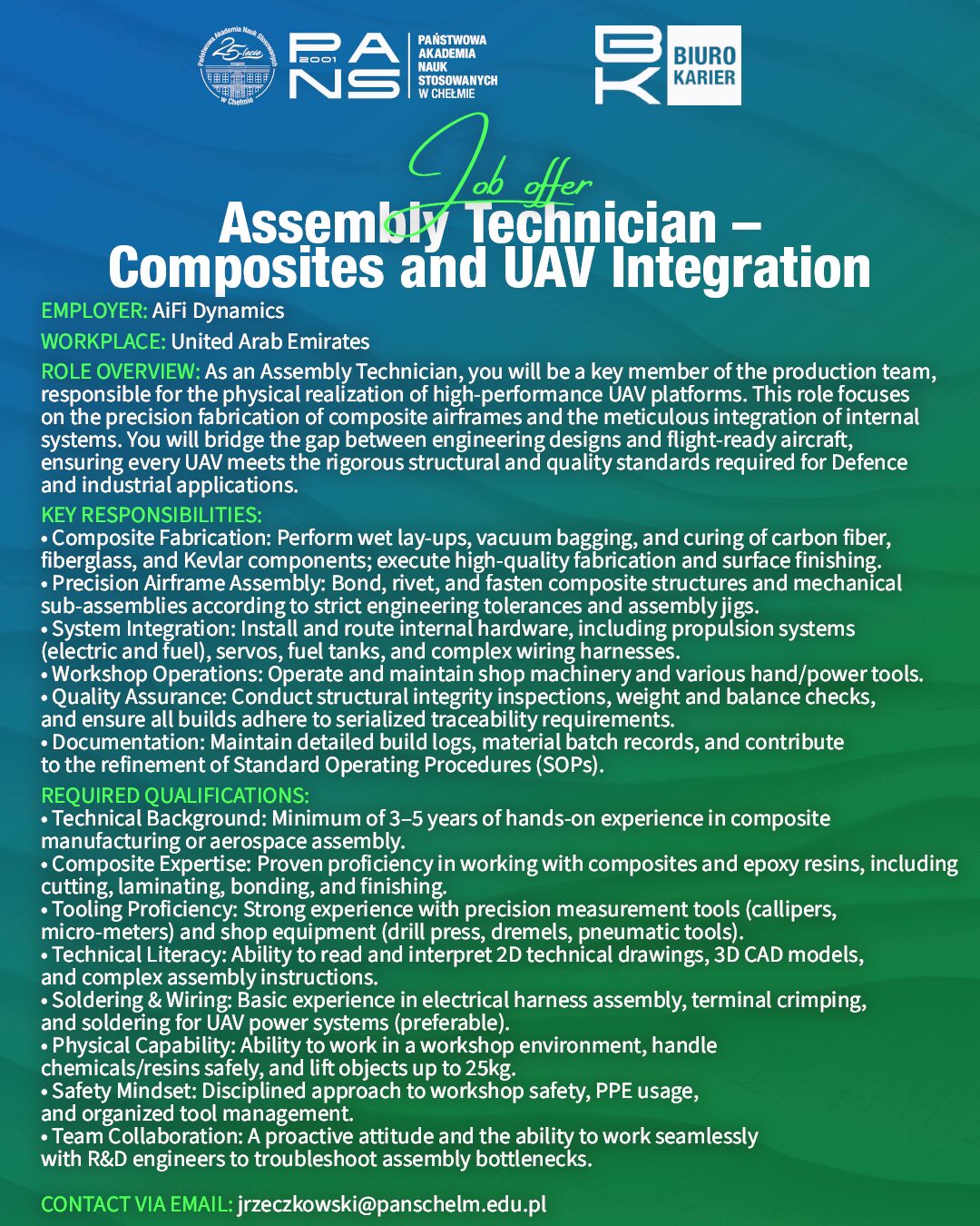 Firma AiFi Dynamics poszukuje specjalistów do pracy przy projektach bezzałogowych statków powietrznych w Zjednoczonych Emiratach Arabskich. Rekrutacja dotyczy stanowisk technicznych i inżynierskich związanych z montażem oraz integracją systemów.