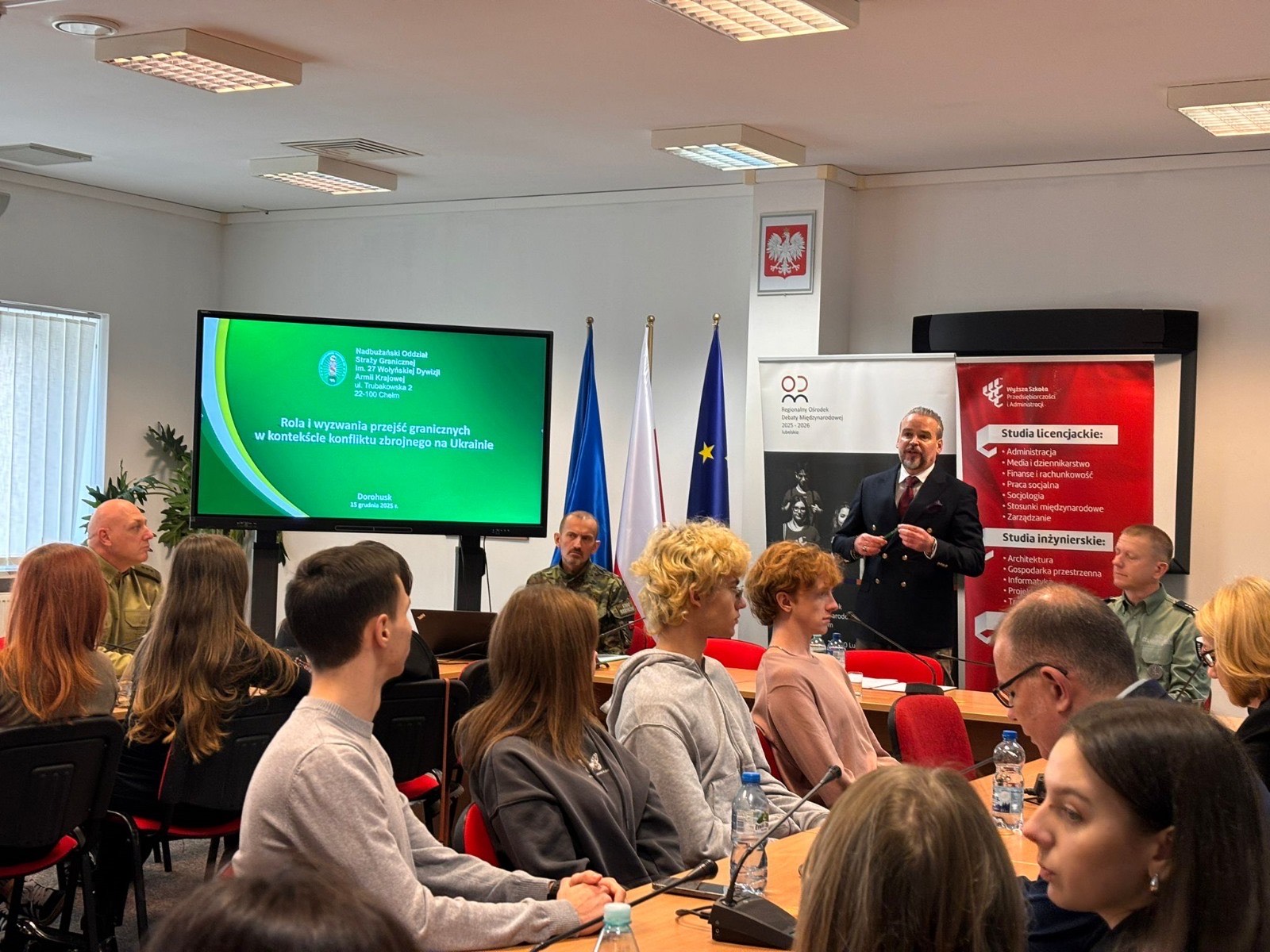 Przedstawiciele Państwowej Akademii Nauk Stosowanych w Chełmie wzięli udział w seminarium poświęconym roli i wyzwaniom funkcjonowania przejść granicznych w sytuacji konfliktu zbrojnego, które odbyło się w Dorohusku. Wydarzenie zorganizowano na zaproszenie Fundacji Wspierania Edukacji i Przedsiębiorczości „INNOVATIV”, operatora projektu Regionalny Ośrodek Debaty Międzynarodowej 2025–2026 w woj. lubelskim, we współpracy z Wyższą Szkołą Przedsiębiorczości i Administracji w Lublinie.
