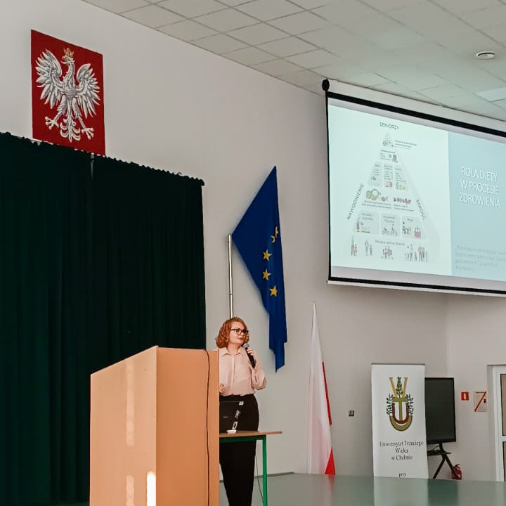 6 listopada 2025 r., podczas spotkania Uniwersytetu Trzeciego Wieku, odbył się wykład Wiktorii Łolik, studentki III roku Pielęgniarstwa, dotyczący roli rodziny w opiece nad osobą starszą po hospitalizacji.