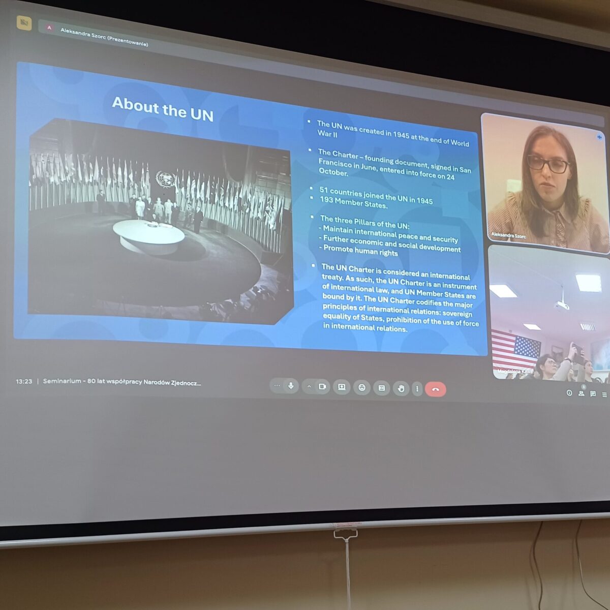 26 listopada 2025 r. odbyło się seminarium naukowe zorganizowane przez Studenckie Koło Naukowe Stosunków Międzynarodowych. Tematem przewodnim wydarzenia była Organizacja Narodów Zjednoczonych. W 2025 roku mija 80 lat od jej powołania. To największa organizacja międzynarodowa, która swoim zasięgiem obejmuje większość państw świata, a jej działania mają realny wpływ na codzienne życie miliardów ludzi.