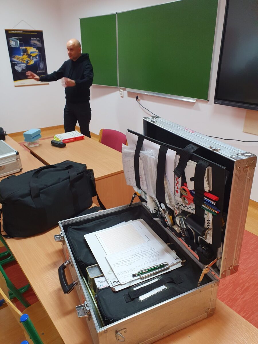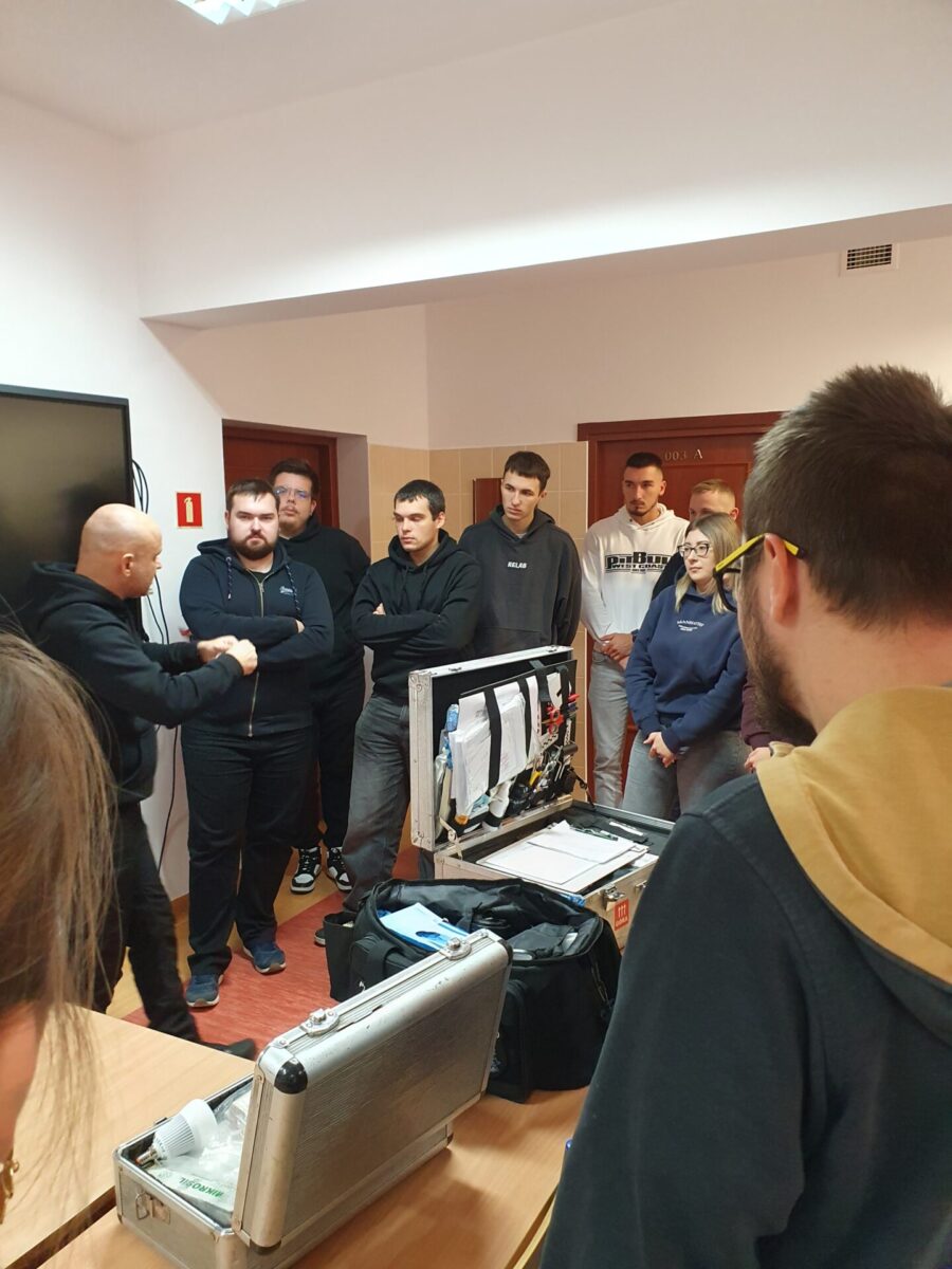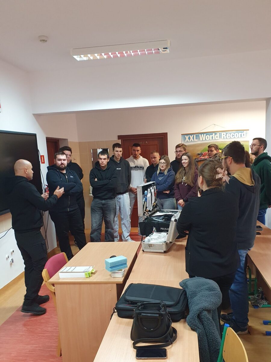 Pod nadzorem asp. szt. Tomasza Paterka studenci mieli także okazję samodzielnie zabezpieczyć ślady mechanoskopijne i daktyloskopijne. Spotkanie, które pierwotnie planowano na 90 minut, przedłużyło się do niemal czterech godzin ze względu na liczne pytania i aktywne zaangażowanie uczestników.