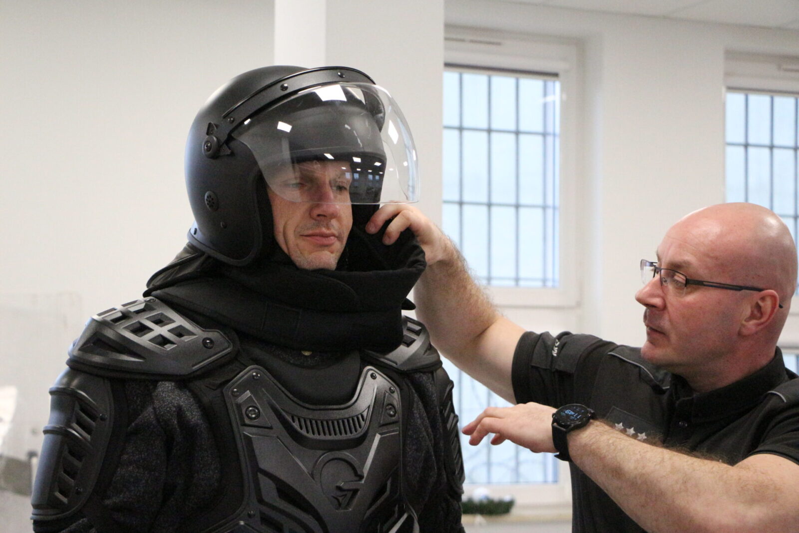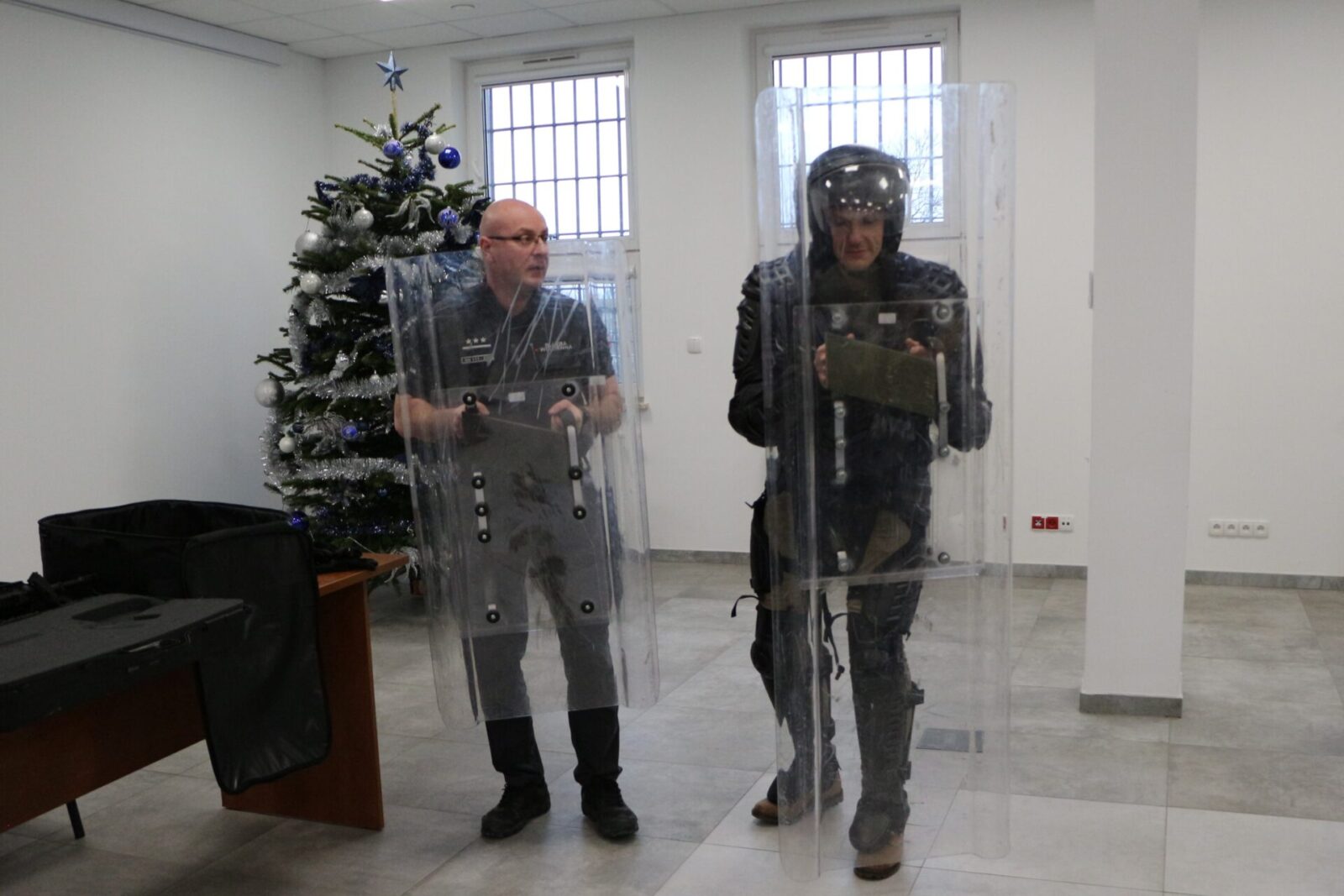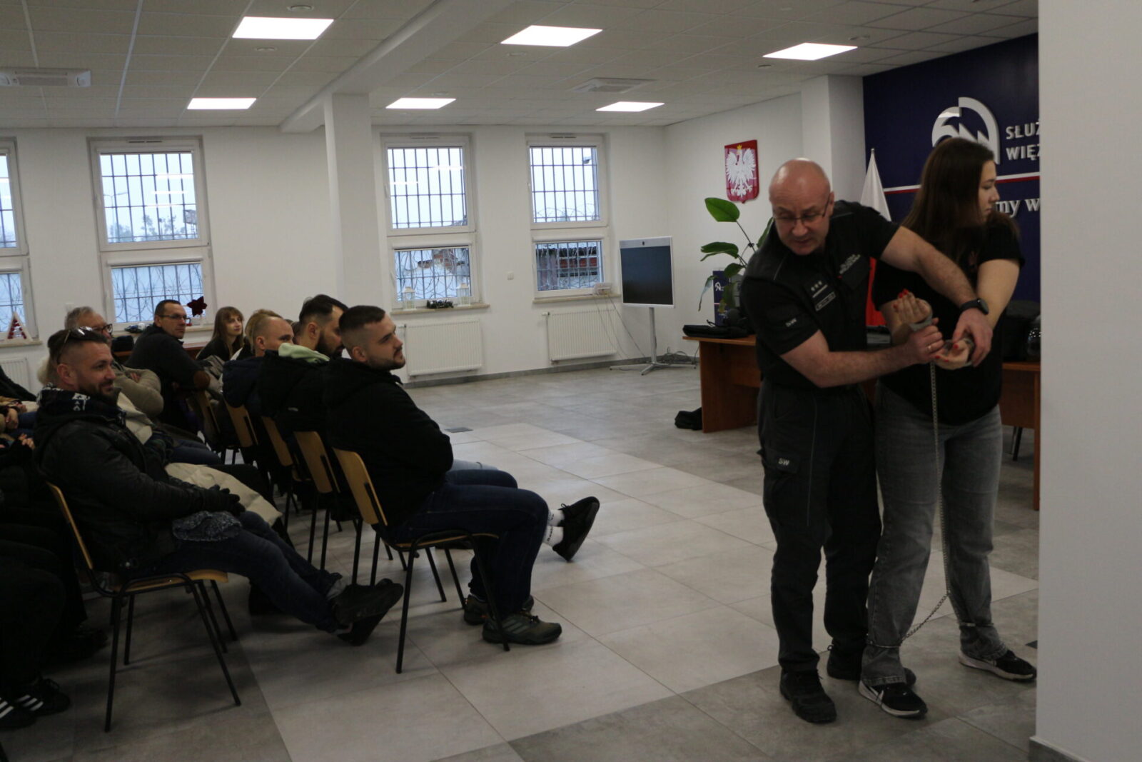 Zajęcia zakończyły się praktycznym pokazem stosowania środków przymusu bezpośredniego oraz środków ochrony osobistej wykorzystywanych przez funkcjonariuszy Służby Więziennej. Studenci mogli zapoznać się z zasadami ich użycia, podstawami prawnymi oraz znaczeniem właściwego przygotowania i odpowiedzialności w sytuacjach wymagających interwencji.
