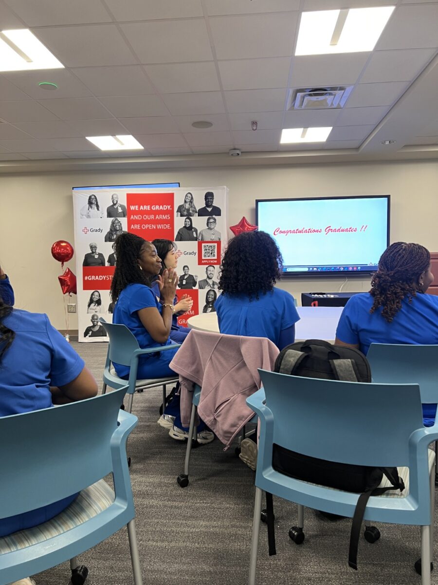 Program obejmował także wizytę w Trauma Center przy Grady Memorial Hospital, jednym z najbardziej obciążonych ośrodków urazowych poziomu I w południowo-wschodnich Stanach Zjednoczonych. Studentki zapoznały się tam ze specyfiką pracy zespołów ratunkowych, a w Grady Simulation Center uczestniczyły w zaawansowanych sesjach symulacyjnych, doskonaląc procedury kliniczne w warunkach zbliżonych do rzeczywistych. Uczestniczyły również w uroczystości wręczenia certyfikatów ukończenia rezydentury pielęgniarskiej.