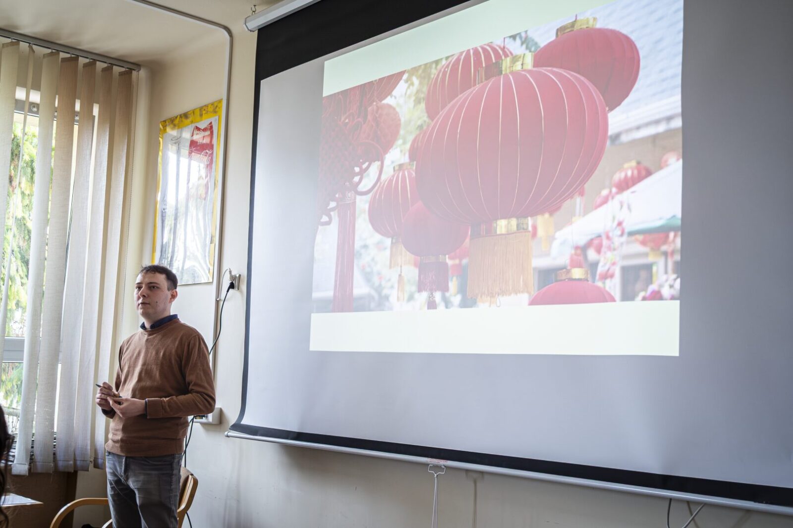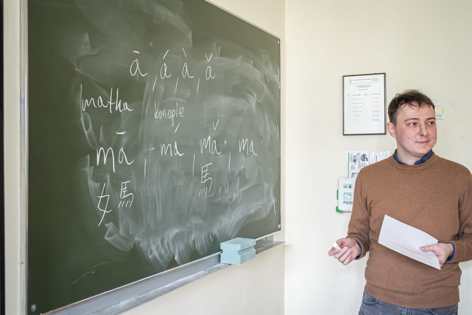Po części teoretycznej uczestnicy mieli możliwość zapoznania się z podstawami języka chińskiego, w tym z wybranymi elementami pisma, co stanowiło praktyczne uzupełnienie tematyki spotkania.